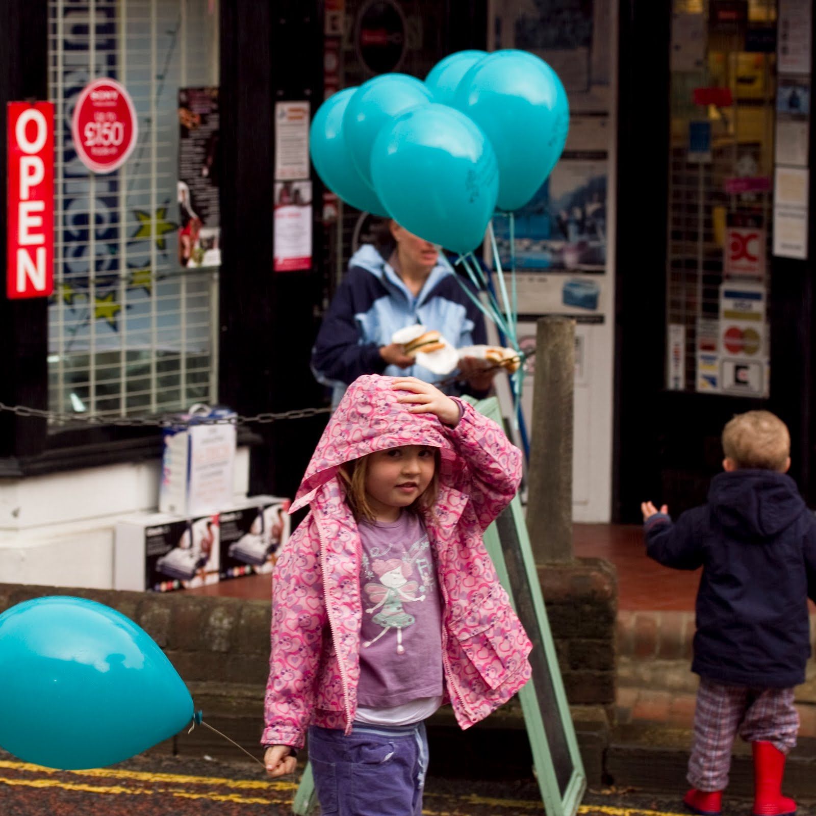 This little girl was very sad after loosing her balloon and was just left holding the string.